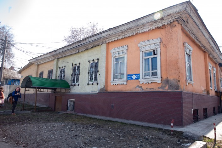 Дом купца Никиты Пугасова находится по Богенбай батыра, 70, это буквально в паре шагов от популярной в народе шашлычки с очень демократичными ценами. Сегодня этот дом поделен на трех хозяев, что видно даже по покраске дома. В двух из них одно время находились типографии, еще одна - по всей видимости, жилая.