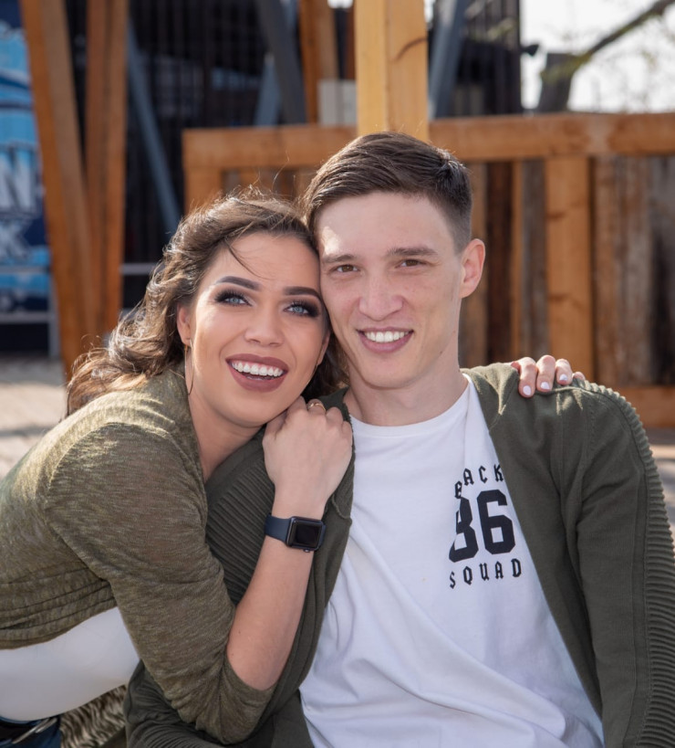 "У нас характеры одинаковые, мы оба неспокойные. Глобально нас объединяет любовь к спорту и взгляды на жизнь, а так интересы разные. Я, например, люблю боевики, а она не любит, она любит "Игру престолов", а я ее терпеть ненавижу (улыбается). Но в свободное время мы любим посидеть с друзьями в кафе или просто гулять".