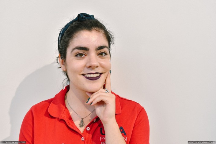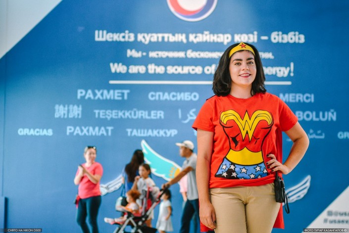 "Я только приехала из Шымкента, была там три дня. Жутко жарко, но мне понравился город", - рассказывает Анна. Как и многие другие студенты в павильоне США, она знает русский язык. Изучала его в университете, говорит, что у нее был выбор - русский или китайский, последний ей показался сложнее.