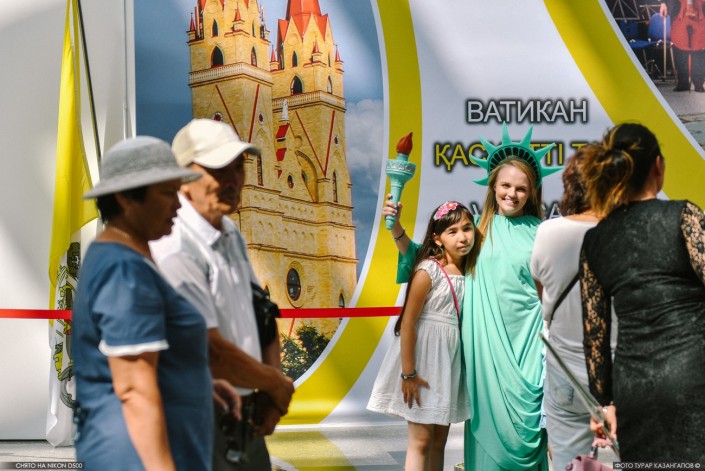 "Помимо вопросов про значки и печати (в павильонах ЭКСПО можно попросить поставить символичную печать - Прим. Tengrinews.kz), задают такие вопросы: "Как вам в Америке? Много ли денег зарабатывают там? Как вообще у вас там жизнь? В Америке классные тачки? Как там новый президент? Иногда сложно придумывать ответы на эти вопросы, но тем не менее это весело", - говорит Логан из штата Юта.