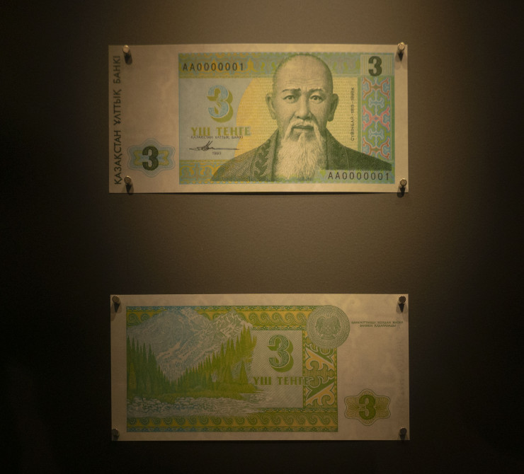 Музей этот буквально напичкан новыми технологиями - все здесь светится, вертится, издает звуки, а видео появляется, казалось бы, в самых неожиданных местах. Например, внутри гигантской монеты вдруг начинает проигрываться старый ролик, на котором Нурсултан Назарбаев демонстрирует казахстанцам первые тенге.