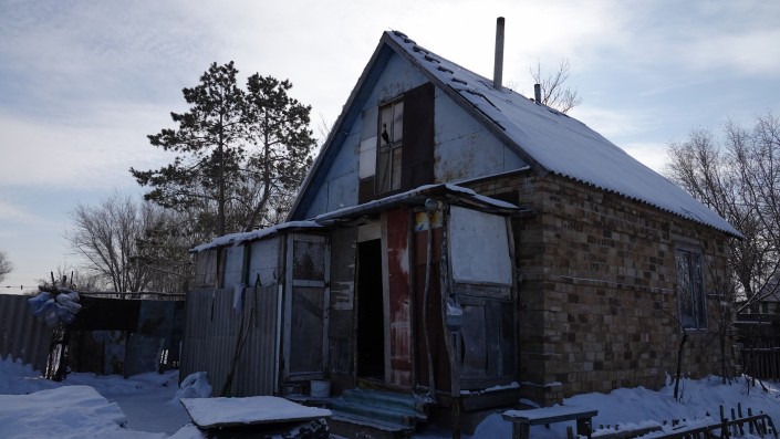 "Это летняя дача, она для зимы не приспособлена совсем. За зиму 20-22 тонны угля уходит на печку, потому что стены тонкие, тепло не держат. Кирпичи отваливаются на улице, мы латаем, как можем. Из трещин в окне видна улица. Полы мы застелили матрасами, а под ними лед, сидеть на полу невозможно", - рассказала Асем.