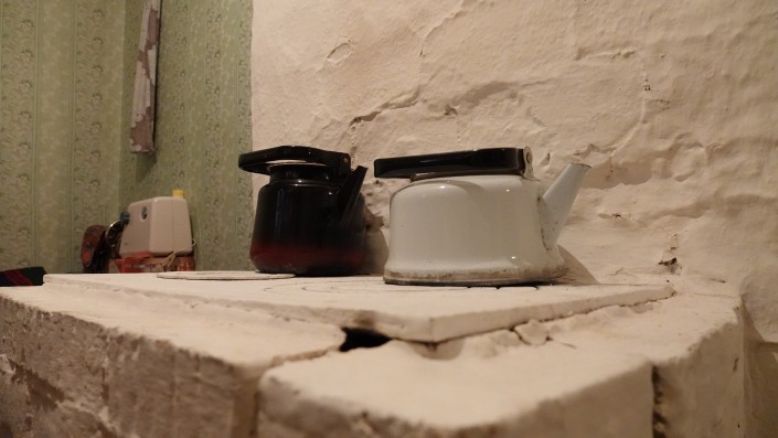 В доме очень холодно, на стенах видны трещины шириной в несколько сантиметров. В сильные морозы семья закрывает все комнаты и живет на кухне, чтобы экономить уголь.