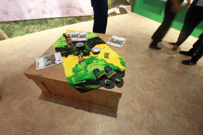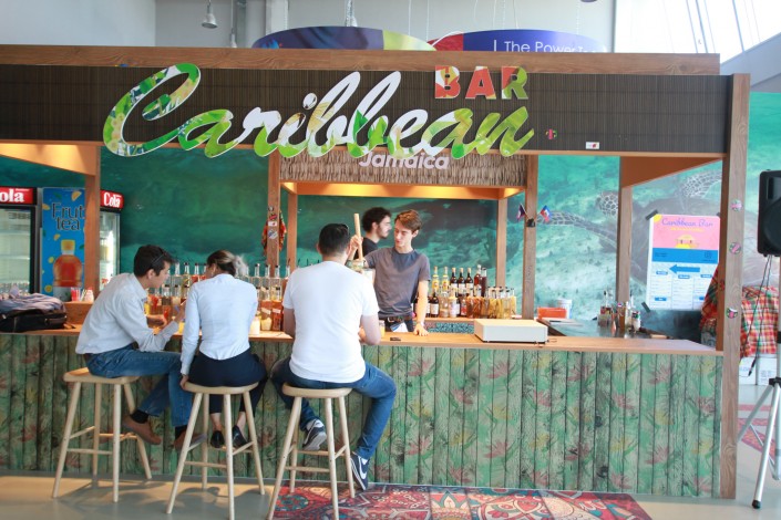 Из карибского бара звучит песня "No woman, no cry" ямайского исполнителя Боба Марли. Его фотография украшает полку национального павильона Ямайки. То есть в этой стране, по всей видимости, считают Марли своеобразным брендом.