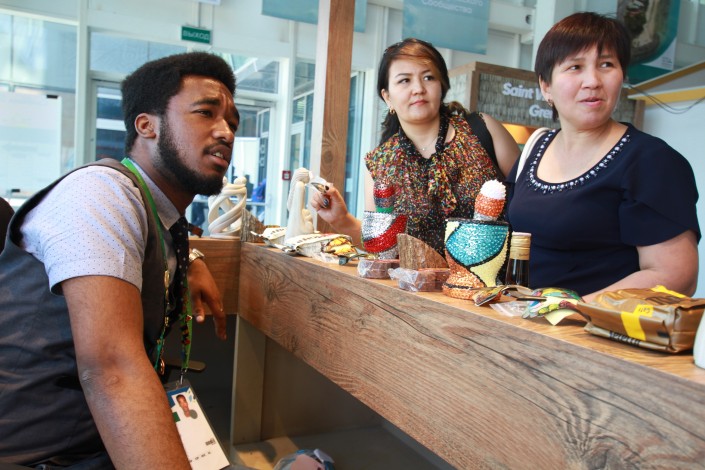 "Возьмите этот острый соус, он хорошо подходит к бешбармаку", - говорит представитель Республики Гаити по имени Саша. У него есть родной брат, которого зовут Владимир. Он тоже здесь, на EXPO, за соседним прилавком торгует сувенирами, ромом, кофе и другой немногочисленной продукцией из стран Карибского бассейна. Такие имена братьям дала мама - большая поклонница русской культуры.