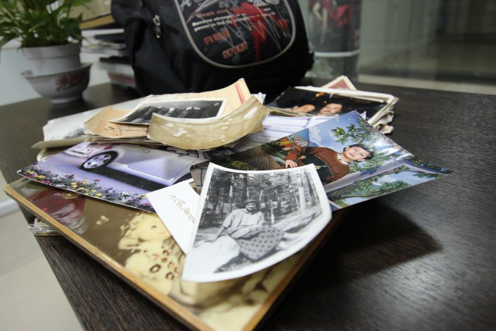В потрепанной с виду черной сумке хранятся пачками ретро-фотографии одной семьи. По словам женщины, этот рюкзак забыли в такси, водитель сам принес его в офис.