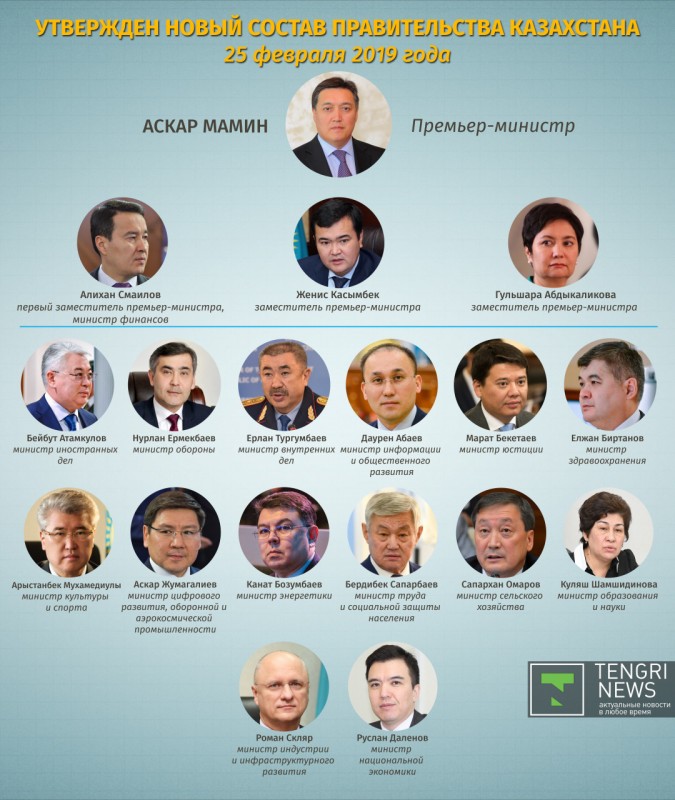 В Казахстане обновился состав правительства. Главой кабмина назначен Аскар Мамин, занимавший до этого пост вице-премьера страны. Все назначения произошли в один день. Tengrinews.kz решил подробней рассказать, какие изменения претерпел кабмин.