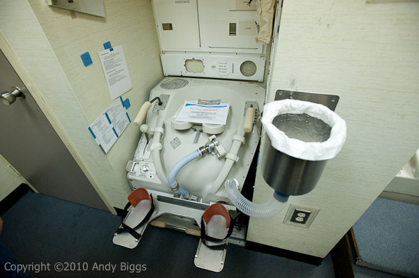 На МКС есть два стационарных туалета и один переносной, причем, чтобы воспользоваться ими, космонавтам нужно пристегиваться к сиденьям унитазов. Отходы человеческой жизнедеятельности в космических туалетах не смываются водой - их засасывает вакуум. Собранные таким образом жидкие отходы расщепляются на кислород и воду, которые затем вновь запускаются в цикл жизни на станции, а твердые скапливаются в специальных емкостях, которые в дальнейшем утилизируются.
