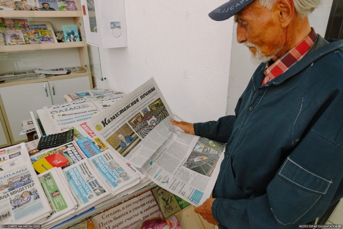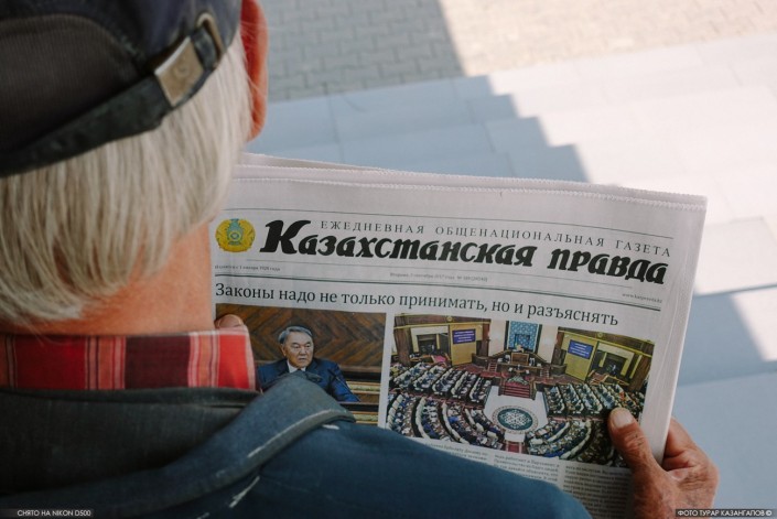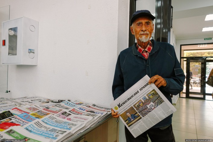 Валентин Иванович держит в руках выпуск "Казахстанской правды", где на первой полосе размещена статья про открытие новой парламентской сессии. Учитывая такое событие, мы интересуемся у экс-депутата следит ли он вообще за политическими новостями?