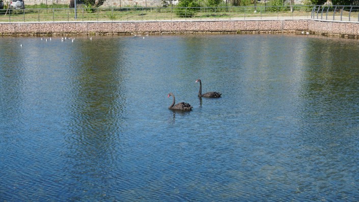 В другой части пруда живут еще два лебедя - черные. Они еще совсем маленькие, им три года. В отличие от белых, которых Светлана просто называет "красотулечками", у черных есть свои имена - Адель и Андерс.