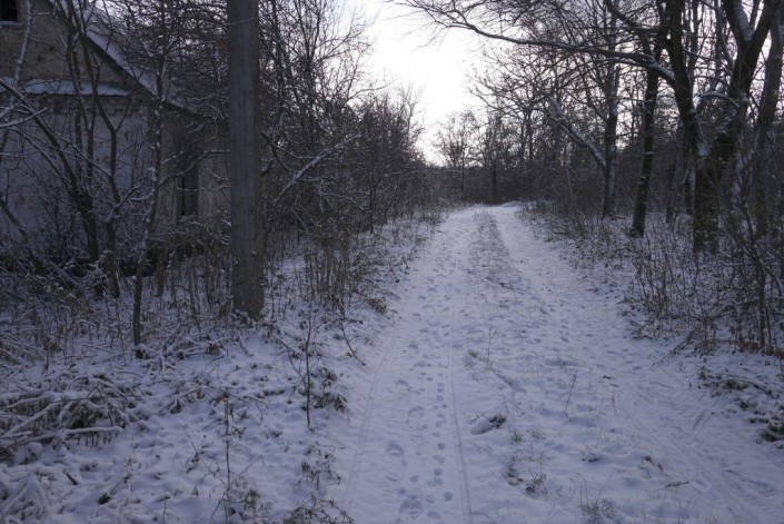 Мы проходим мимо добротных одно- и двухэтажных частных домов и оказываемся посреди леса.