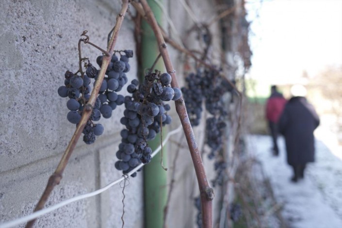 Обращаем внимание на виноград, растущий на даче. Пробуем его на вкус. Он оказывается очень сладким.