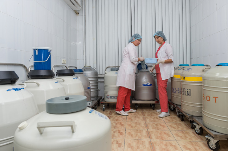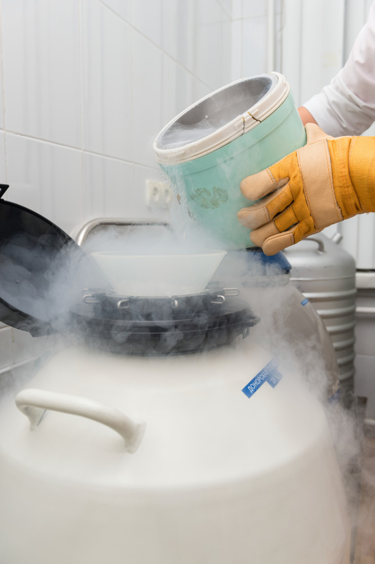 "Биоматериал замораживают в жидком азоте при температуре минус 196 градусов, в специальном сосуде Дьюара, который маркируется, у каждого сосуда свой номер, все это заносится в базу, и перепутать что-то просто невозможно. Прописано, что он, биоматериал, может храниться до 25 лет, хотя на самом деле гораздо больше".