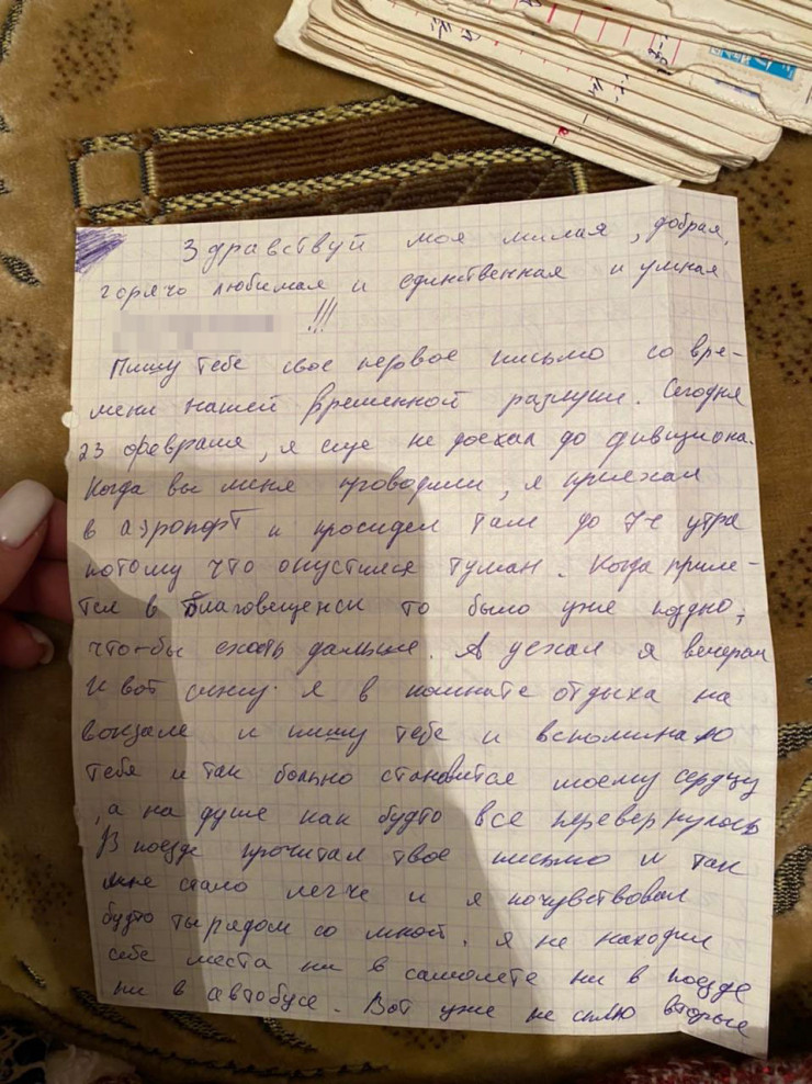 "Мама до сих пор хранит огромную стопку папиных писем. Когда папа был на службе, он всегда писал маме, ей было лет 19 на тот момент. "Моя любимая" - он ее называл. В письмах рассказывал все, что с ним происходило за день. Когда я эти письма читаю, плачу. У нас хранится меньше половины, остальные, увы, потеряны".