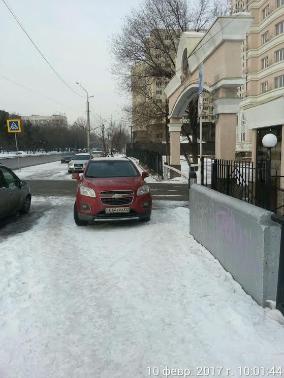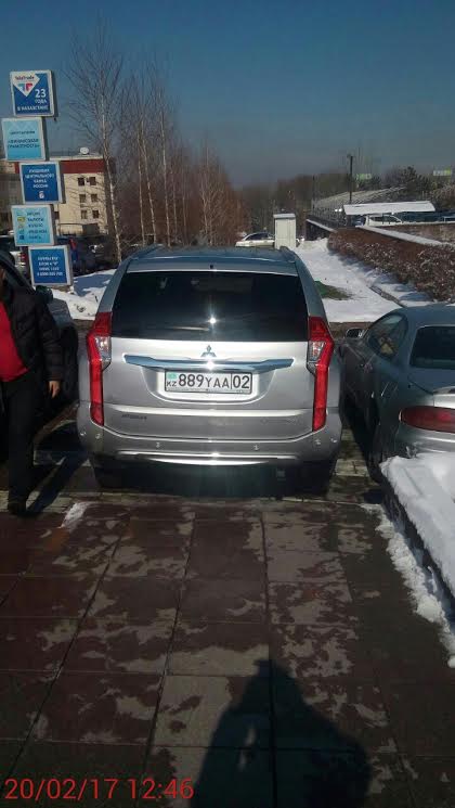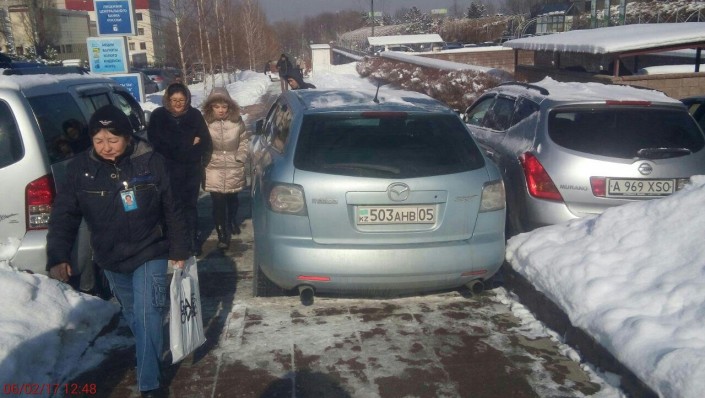 Следующие фото также из Алматы. На кадрах видно, что автомобили Mazda и Mitsubishi были оставлены водителями прямо на линии тротуара близ БЦ "Нурлы-Тау", из-за чего пешеходам приходилось с трудом их обходить.
