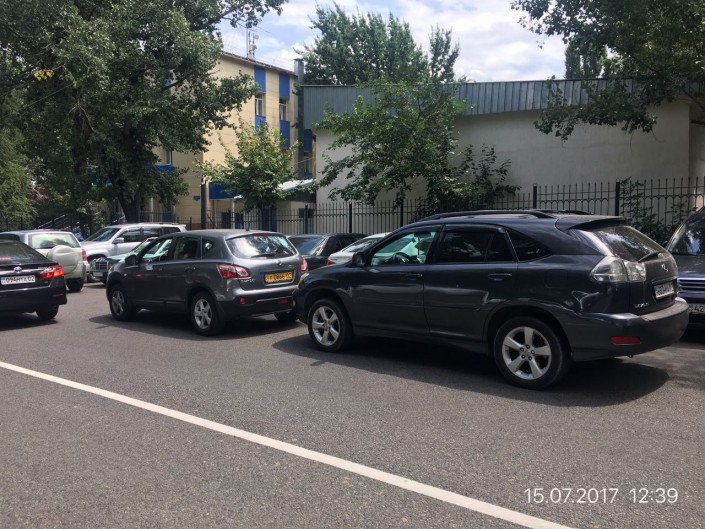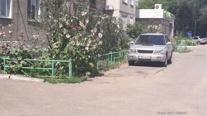 Согласно ПДД РК, стоянка на краю тротуара, граничащего с проезжей частью дороги, с полным или частичным заездом на него, разрешается только легковым автомобилям, мотоциклам, мопедам и велосипедам при условии, что это не будет препятствовать движению пешеходов. Очевидцы запечатлели несколько авто, припаркованных прямо на тротуаре во дворе жилого дома. Места для пешеходов там нет. Улица Набережная 7.