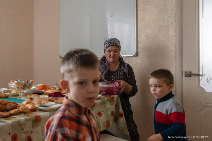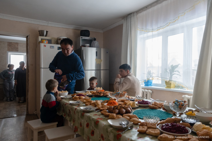 Семья Кабылбаевых живет в Акмолинской области, в селе Кенесары. Это не так далеко от областного центра - города Кокшетау. У ворот нас встречает многодетный отец Мурат и сразу приглашает войти. На пороге непривычно для наших глаз очень много обуви. Из кухни доносится запах готовящегося обеда.