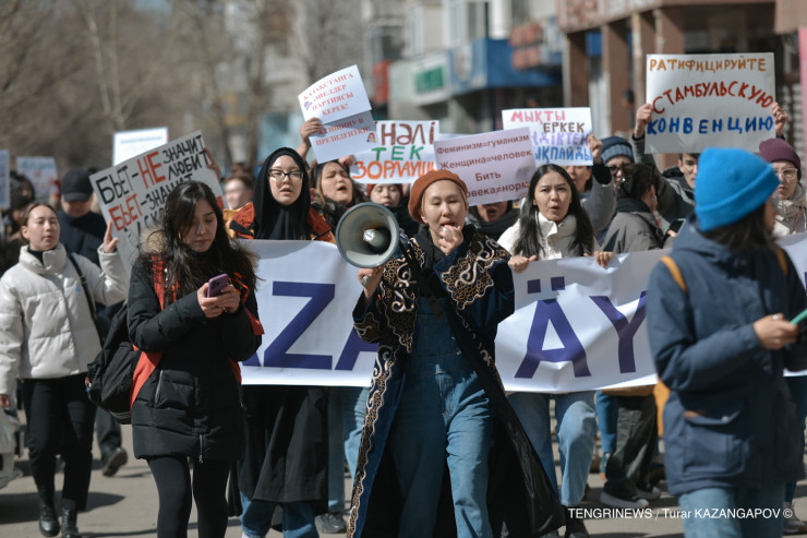 В Астане прошел марш и митинг против насилия в отношении казахстанских женщин, организованный инициативой Myqty Women, передает корреспондент Tengrinews.kz.