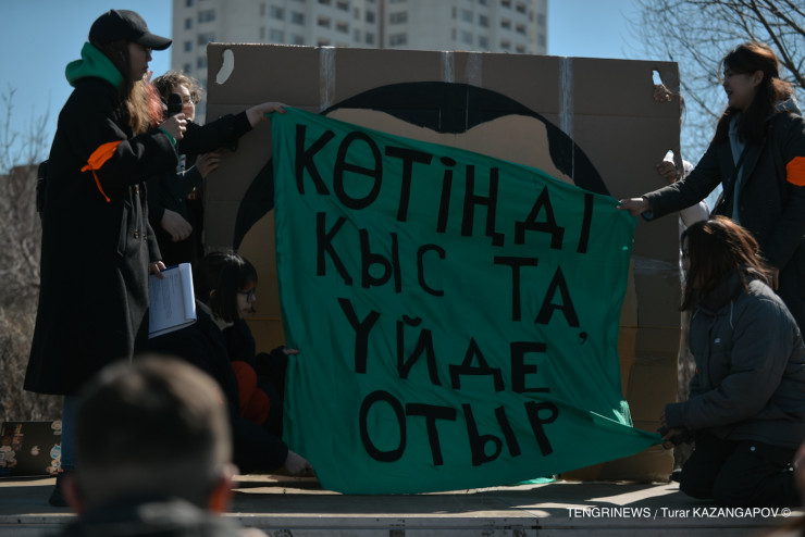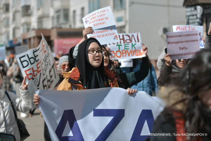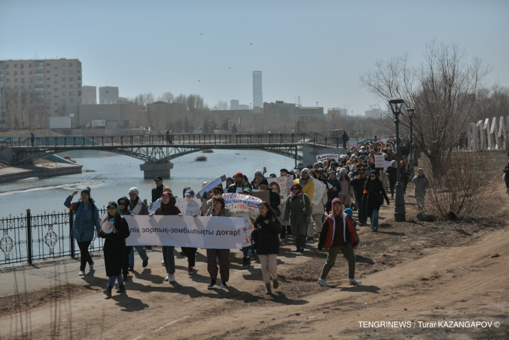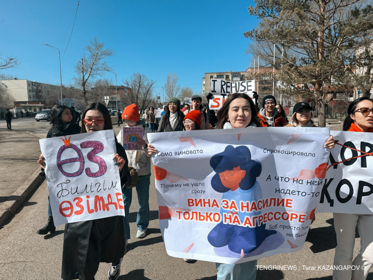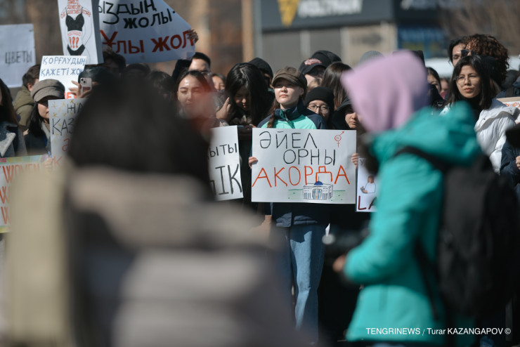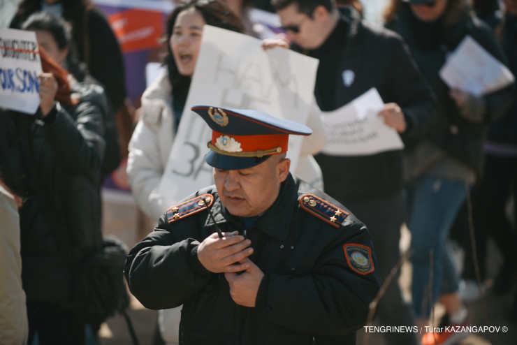 "Изначально акимат не перекрыл дорогу, и мы были вынуждены идти по узкой тропинке, постоянно упираясь в остановки, в машины. Это небезопасно и некомфортно. Марши так не проходят", - сообщила одна из организаторов шествия.