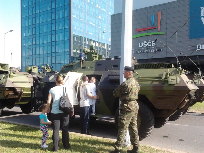 Кстати, меня поразило отношение сербских солдат, участвовавших в смотре войск, к обычным людям. Во время репетиции парада в честь освобождения Белграда одна из улиц была запружена тяжелой военной техникой. Если бы дело происходило у нас, весь периметр бы оцепили полицейские и отгоняли бы народ как можно дальше от ограждений. В Белграде же временная стоянка танков и БТР-ов превратилась в парк аттракционов для детворы: военные не только не выпроваживали пацанов, но и подсаживали их на башни, нацепляли на ребячьи головы свои каски и даже позволяли прицелиться из орудий.