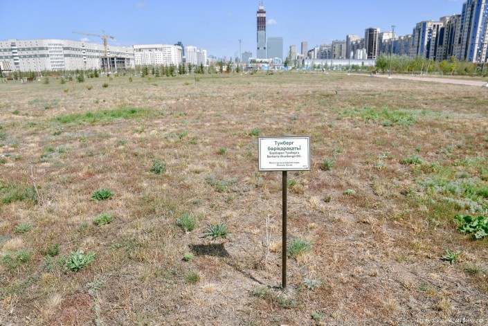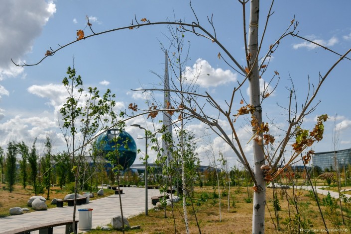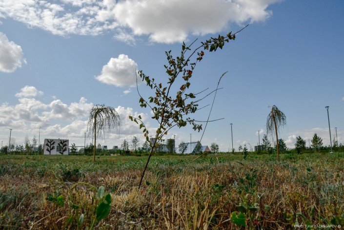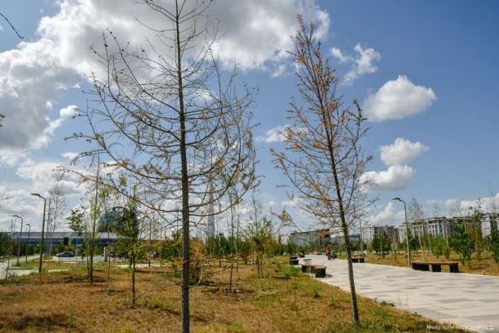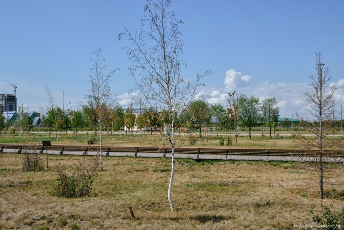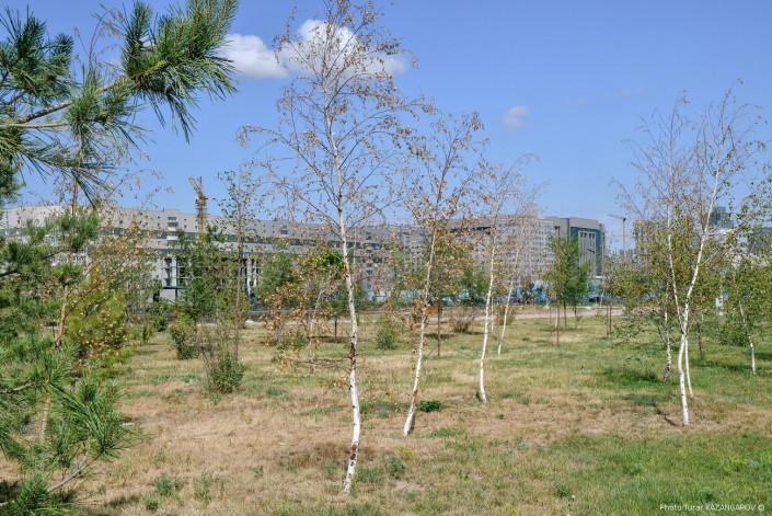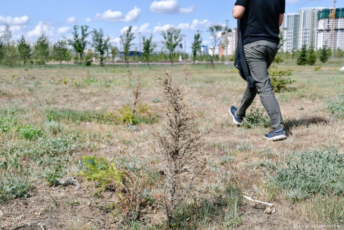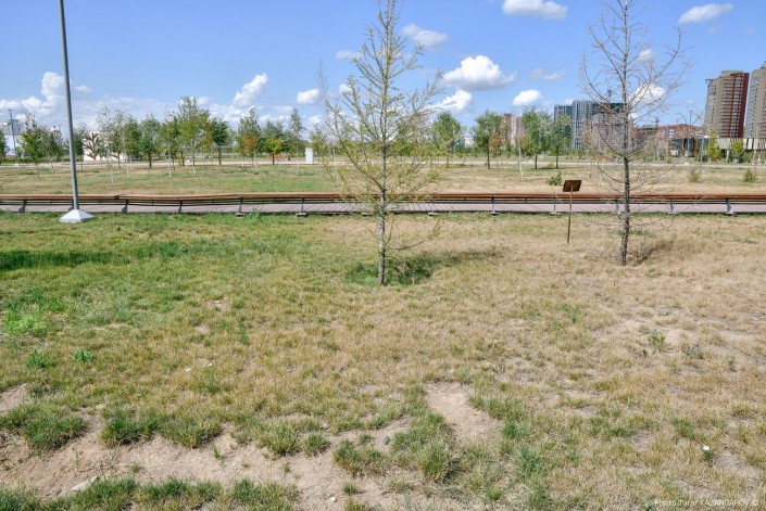 Ботанический сад Нур-Султана. На фото можно заметить, что на одном участке трава и деревья растут хорошо, но в нескольких метрах ситуация обратная.