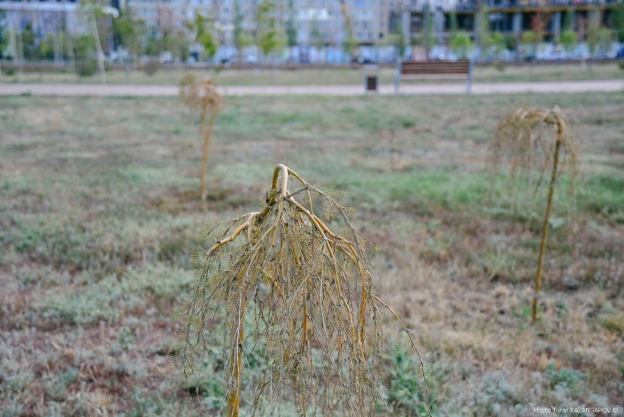 Несмотря на еще не пришедшую осень, с некоторых деревьев в Нур-Султане уже опали листья, а другие саженцы и вовсе засохли. Столичные пользователи социальных сетей выдвинули свои версии: отсутствие ухода и полива, неправильная технология посадки и засушливое лето.
