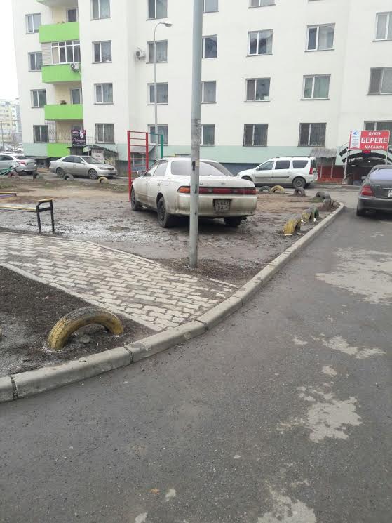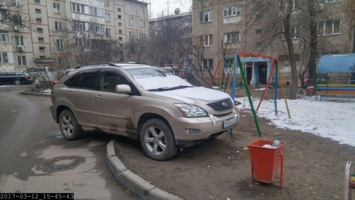 Парковка автомобиля Toyota на детской площадке в Алатауском районе.