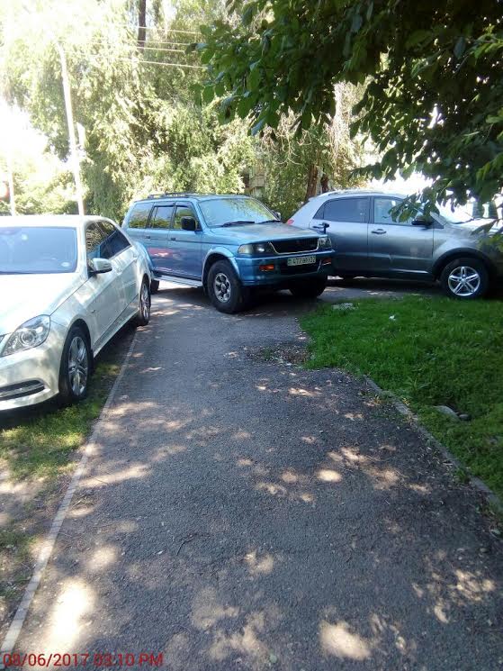 "Перекрыт тротуар на улице Айтеке би синим внедорожником Mitsubishi. Не смогли пройти с коляской", - прокомментировал свое фото очевидец.