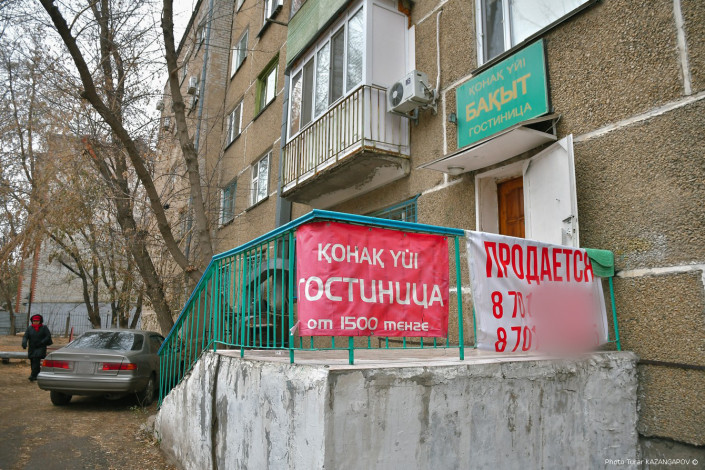 Один из старых районов столицы Казахстана. Вместе с начальником отдела ювенальной полиции Нэллей Дощановой мы заходим в подъезд, на котором висит баннер "Гостиница от 1500 тенге".