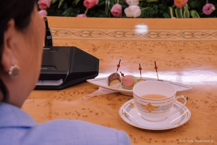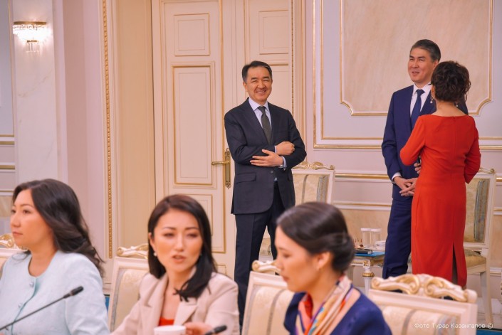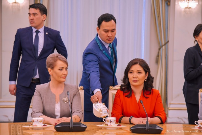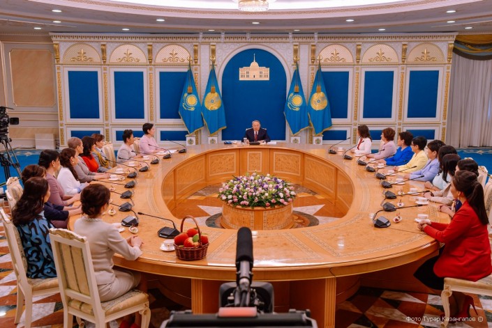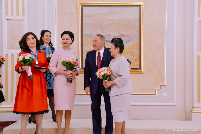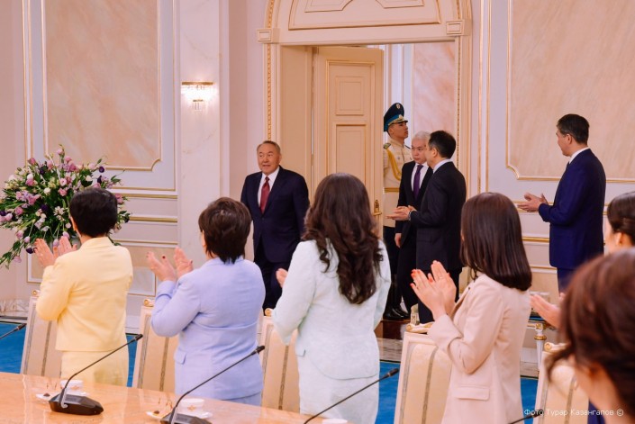 Вошел Нурсултан Назарбаев. Он извинился перед ожидавшими его дамами за то, что немного задержался.