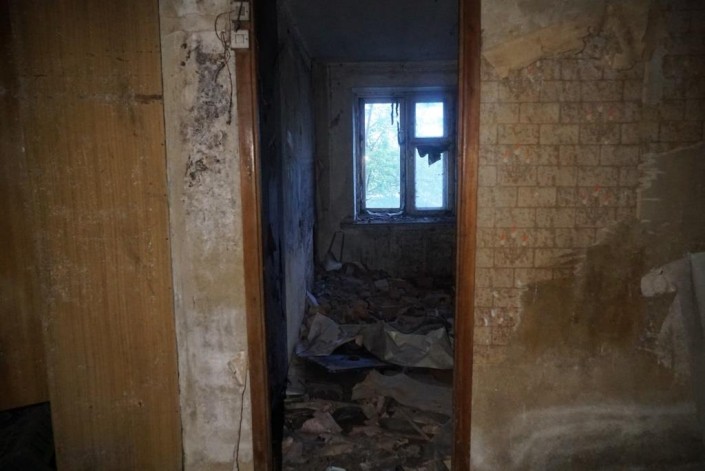 Заходим в сохранившиеся подъезды. Квартиры открыты. Ощущение жуткое.