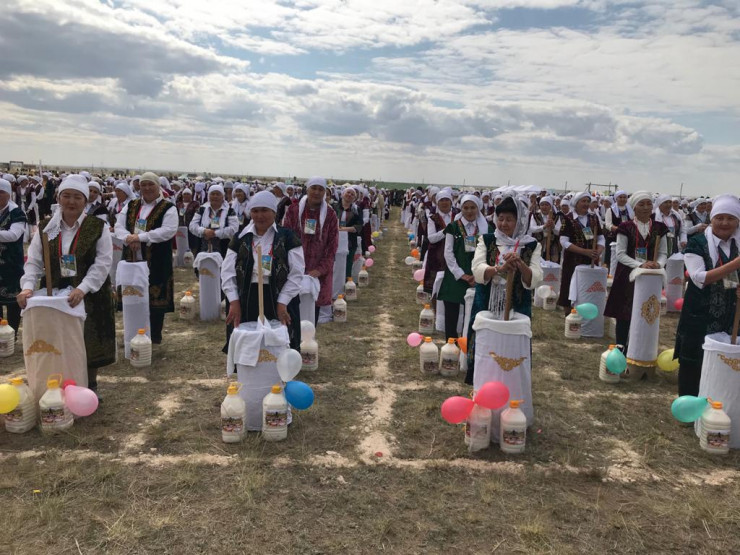 "Казахстанцы любят совершать кулинарные подвиги. В Атырау, к примеру, была сделана самая длинная в стране колбаса. Ее готовили 25 поваров пять дней. А горожанам понадобилось почти два часа, чтобы съесть десятиметровое мясное изделие. Не менее удивительные люди проживают в Жанааркинском районе Карагандинской области. Там тысяча женщин взбивала десять тысяч литров кумыса. Вы только представьте, где они нашли столько лошадей!"