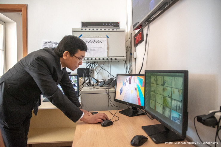 Покидая школу, Асхат Аймагамбетов зашел в комнату с видеонаблюдением, проверяя, есть ли слепые зоны и все ли камеры работают.