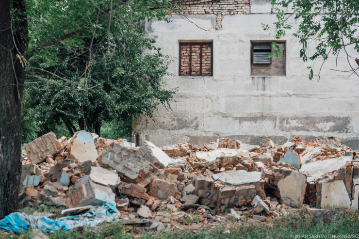 Нашу собеседницу зовут Лидия Александровна, ей 86 лет, живет она в поселке Енбекши. Раньше он назывался Биокомбинат, вся его деятельность была связана с Москвой, говорят, до сих пор у этого поселка так называемый московский статус. А в том самом месте, где сейчас лежат одни обломки, наша героиня проработала четверть века.