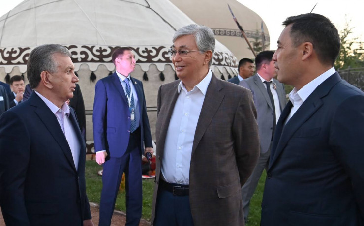 Президенты Казахстана, Кыргызстана и Узбекистана в культурном центре "Дордой Номад" на Иссык-Куле в 2022 году