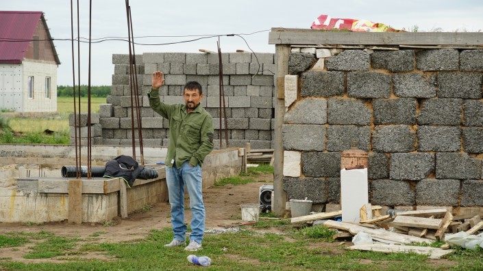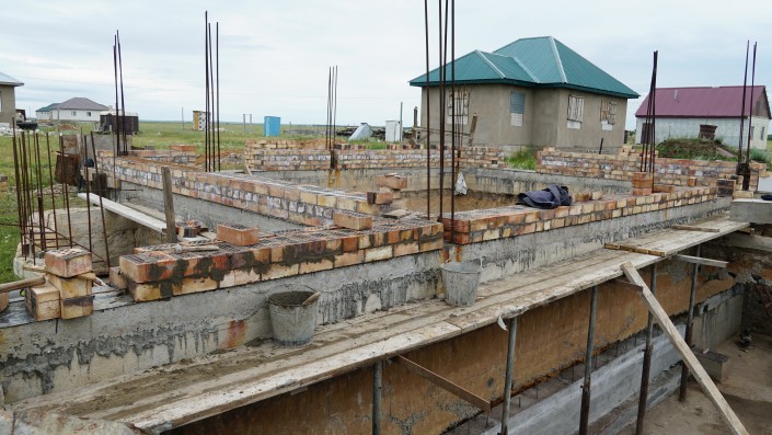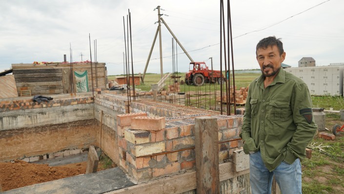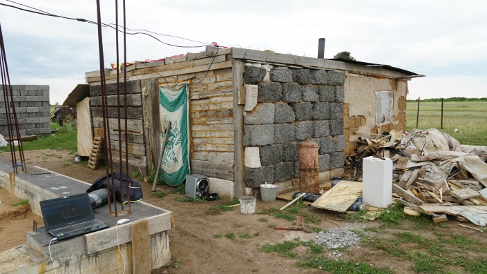 Поэтому до наступления холодов Каратай хочет во что бы то ни было достроить первый этаж дома и заселить туда семью. При этом работы он будет продолжать и зимой.