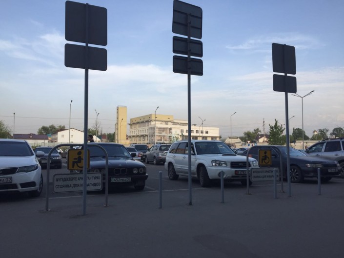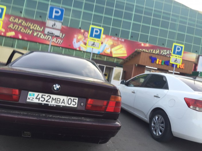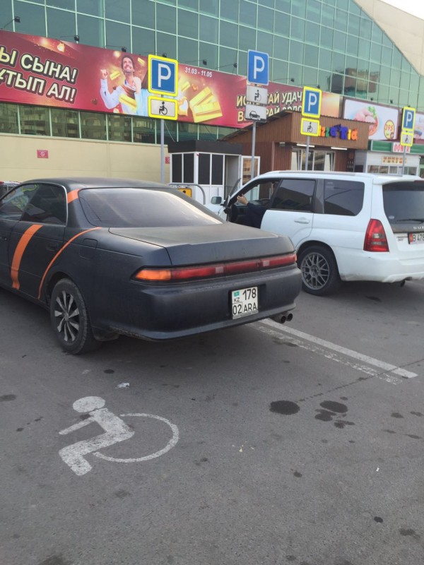 Еще один автомобиль с алматинскими номерами на парковке для инвалидов.
