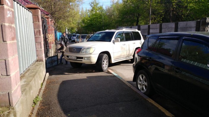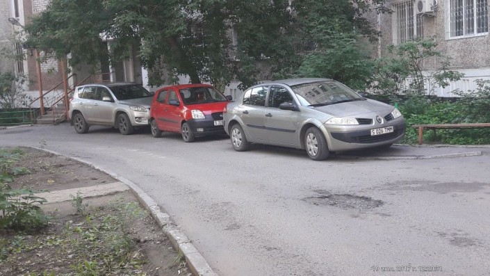 В мае этого года сообщалось, что два автомобиля припаркованы на тротуаре у подъезда в микрорайоне "Аксай-1", дом 11 в Алматы.