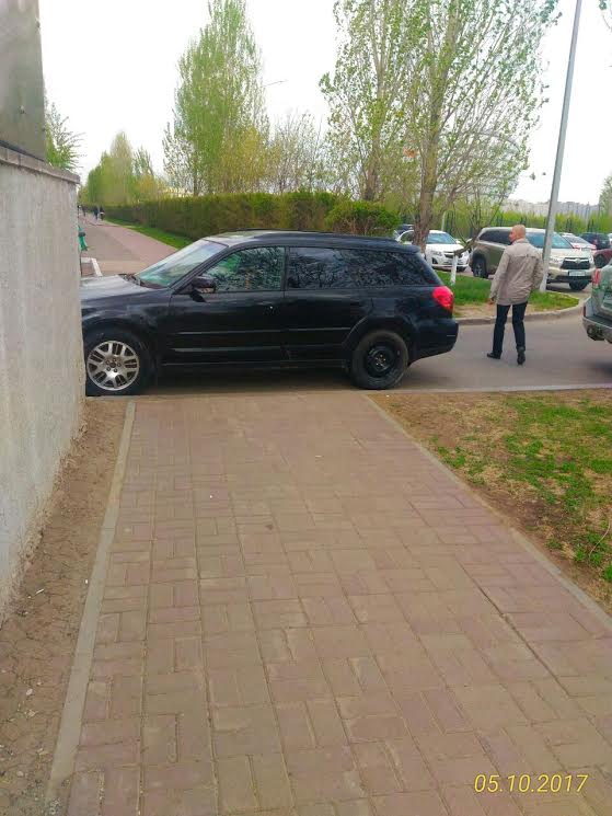 Водитель авто заехал на тротуар, тем самым перегородив место прохода в сквер на набережной в Астане.