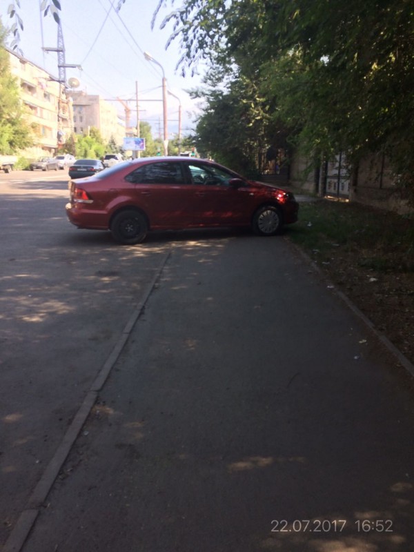 Водитель припарковал свой Volkswagen на тротуаре близ пересечения улиц Манаса и Жамбыла в Алматы.