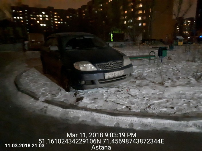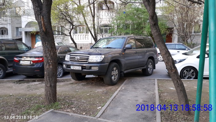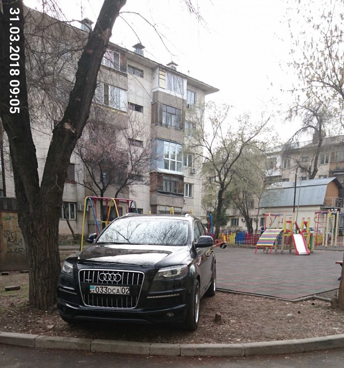 Случай на проспекте Назарбаева ниже улицы Макатаева. Как видно на фото, владелец машины поставил ее почти на детской площадке.