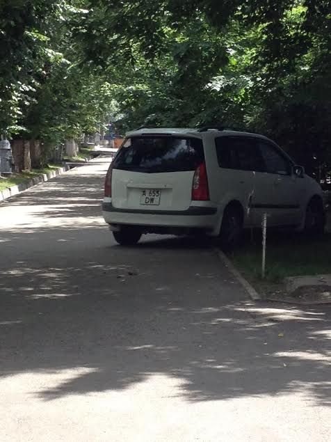 Любитель парковаться на газонах в Алматы во дворе жилого дома по улице Айманова, 85.