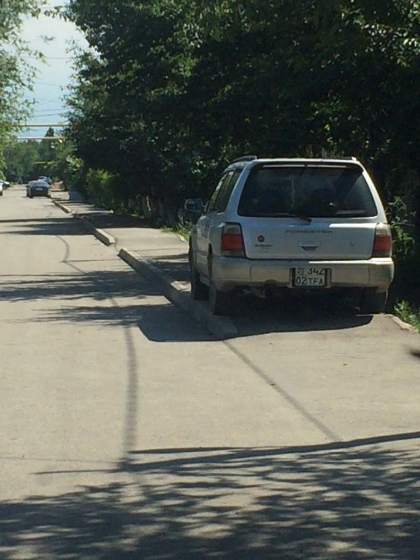 Горожане продолжают неустанно бороться с водителями, которые паркуют свои авто прямо на тротуарах. А ведь согласно пункту 12.2 ПДД РК стоянка на краю тротуара, граничащего с проезжей частью, с полным или частичным заездом на него разрешается только легковым автомобилям, мотоциклам, мопедам и велосипедам при условии, что это не будет препятствовать движению пешеходов. На фото, сделанном в Алматы, видно, что пешеходам этот автомобиль явно будет мешать.