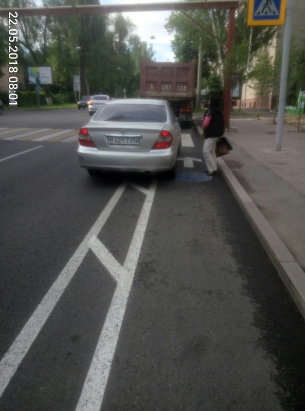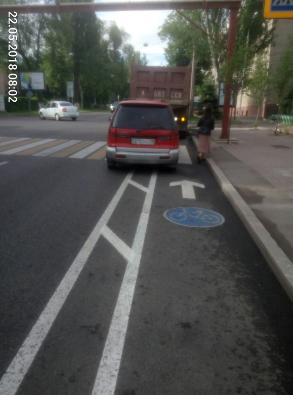 Все фото и видео были сняты в Алматы. Как видно, очень много водителей выезжают на выделенные полосы для велосипедистов.