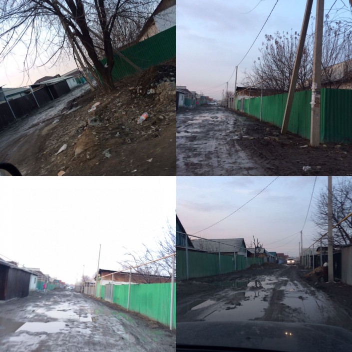 Похожая ситуация и в микрорайоне "Айгерим", который находится в Алатауском районе Алматы. "Хотелось бы просто обратить внимание нашего акимата на состояние дорог в нашем микрорайоне, а именно нашей улицы. Проживаю я по адресу переулок Акатаева, дом 12, на фото видна наша улица с заезда с улицы Кожаканова. Совсем близко с нами и мировая сцена недавней Универсиады, прошедшей в Казахстане. Еще ближе к нам находится сам Аппарат акима Алатауского района. И собственно сам вопрос: почему нашу улицу не асфальтируют? Весной и осенью нет желания выезжать из дома, выедешь и не охота возвращаться по таким улицам. Может, кто-то увидит и примет меры наконец", - задается вопросом читатель.