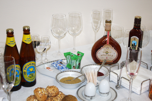 Утром в пресс-центре Дворца Независимости Беларуси журналистов ждал необычный сюрприз. На столе с привычными чаем, кофе и закусками (это неизменные атрибуты практически каждого саммита), можно было заметить бутылки с водкой, коньяком, вином и пивом. Представители СМИ делали вид, что все это их не интересует, наливали кофе и уходили. Однако со временем бутылок с алкоголем становилось все меньше и меньше, под занавес саммита их не осталось и вовсе.