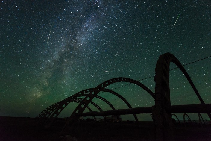 В ночь на 13 августа можно было наблюдать уникальный звездопад Персеиды. Не пропустить это событие настоятельно рекомендовали и казахстанские астрофизики, называя это самым доступным и красивейшим явлением. Послушав ученых, фотограф Tengrinews.kz Турар Казангапов провел ночь в степи, чтобы заснять падение метеоров из созвездия Персея.