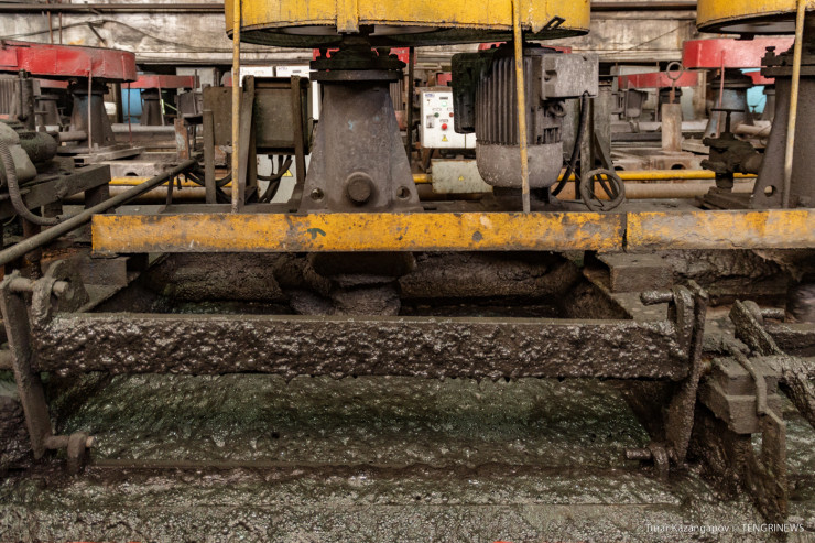 Нургали рассказал, что в отделении флотации в смесь из воды и руды подают воздух. В воде содержатся специальные вещества, которые заставляют частички меди прикрепляться к пузырькам воздуха и вместе с ними всплывать на поверхность.