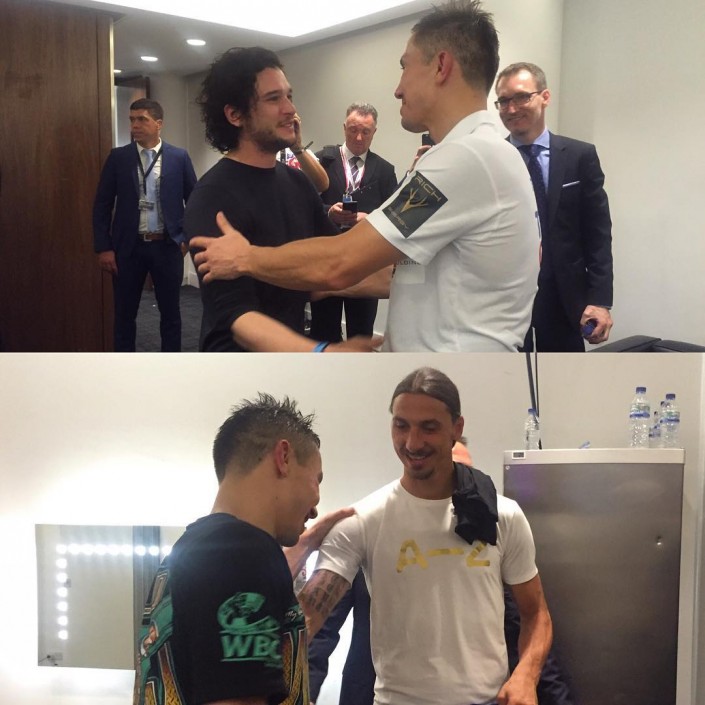 Геннадий хорошо отзывается о Келле Бруке, как и обо всех предыдущих соперниках. Они заслуживают уважения хотя бы за то, что соглашаются на бой, от которого отказываются все остальные. Впрочем, в проигрыше они тоже не остаются. Их известность переходит на новый уровень, если их имя связывают с Головкиным. Это правда. #GolovkinBrook в день боя стала одной из самых обсуждаемых тем в британском твиттере, войдя в пятерку по упоминанию. Звезды, пришедшие на бой поболеть за казахстанца, стали отдельной темой для заголовков мировых изданий. Один из самых известных футболистов Златан Ибрагимович, будучи поклонником бокса GGG, прибыл на бой сразу после футбольного матча, который завершился за несколько часов до стартового гонга. После поединка он одним из первых поздравил чемпиона в его раздевалке. Разделили радость победы казахстанца и представители семьи НВО - актеры самого кассового сериала "Игра престолов", которые присоединились к Головкину и за праздничным ужином после боя.