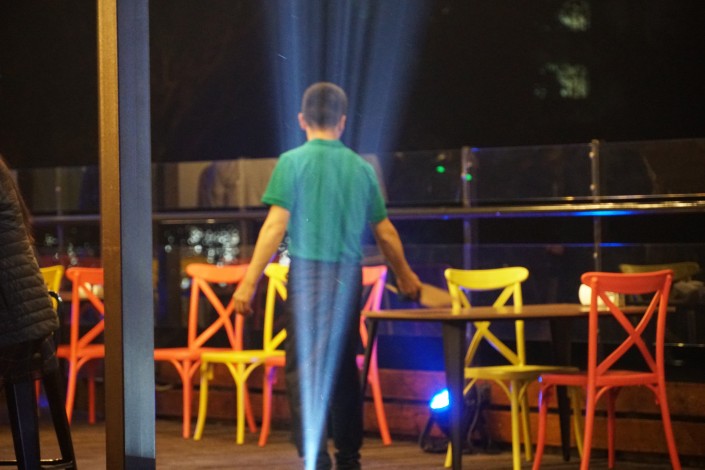 Все это веселье проходит на крыше некогда промышленного объекта.